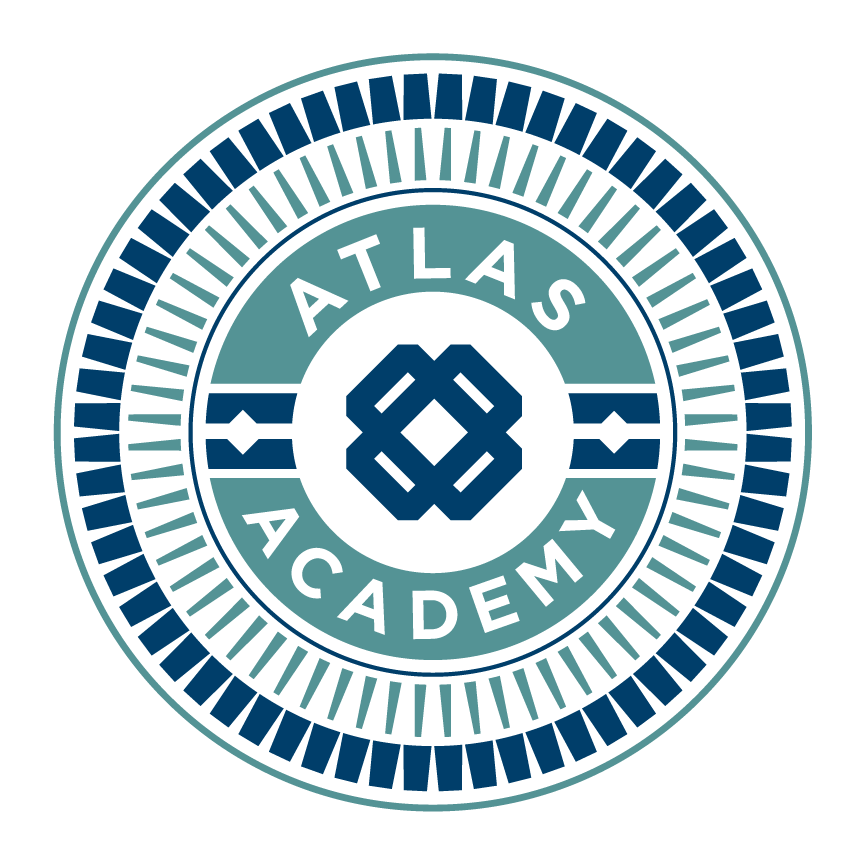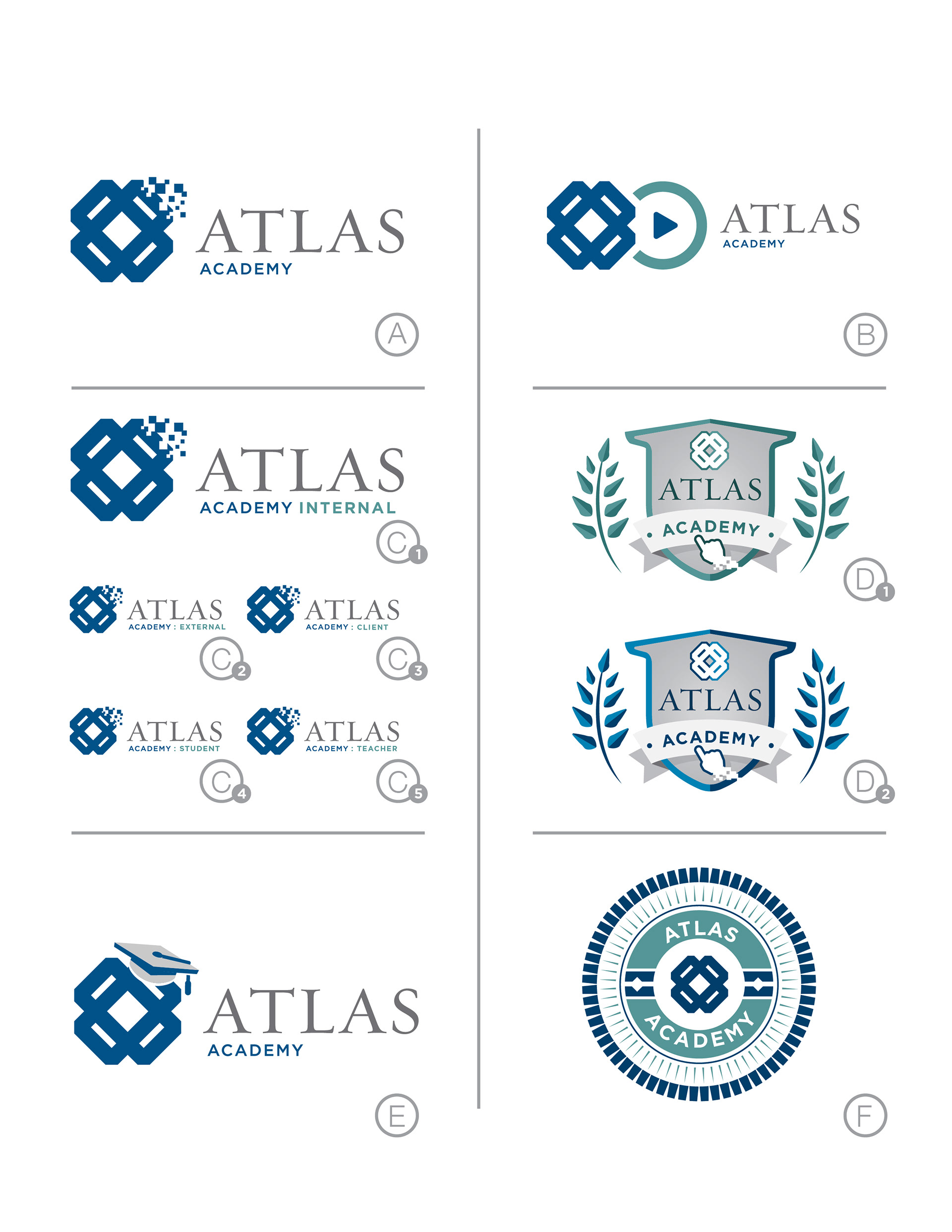 Atlas Research's internal initiative called "Atlas Academy". The first image is the approved logo for the program based on Atlas' logo / branding. The second image shows the other possible iterations.