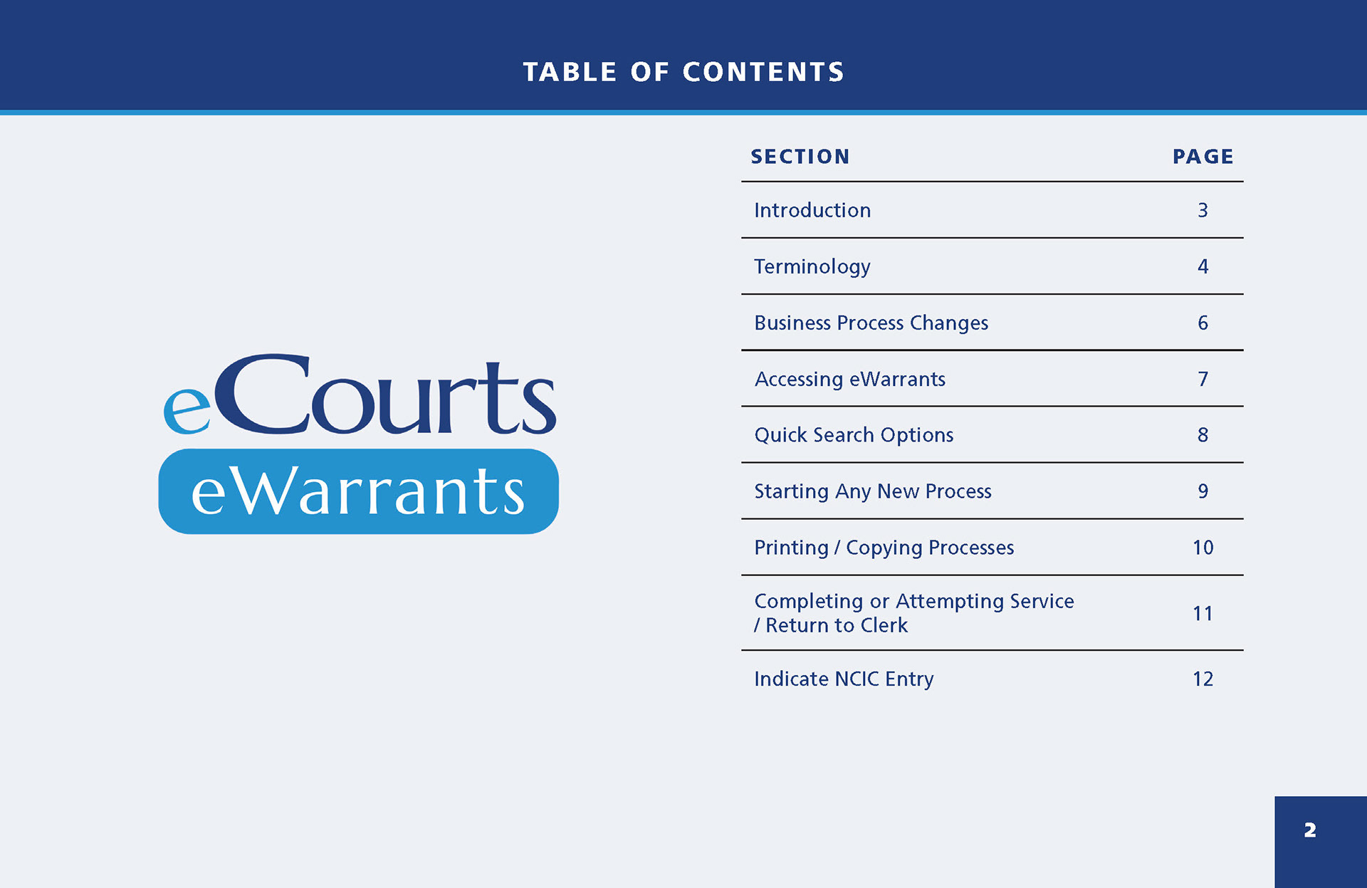 North Carolina Judicial Branch | eCourts / eWarrants reference guide for online platform transition via Tyler Technology. Created in InDesign as an ebook with slide deck and printing as an option. Every page has an anchored link to the Index and Terminology, as well as hyperlinks.