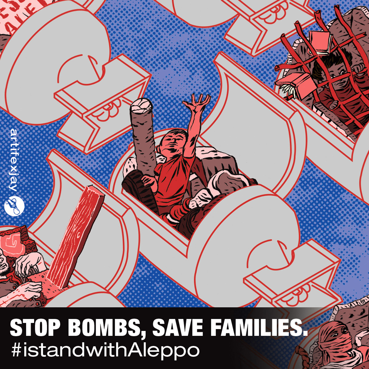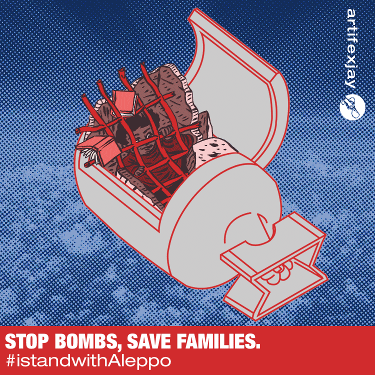 Stop Bombs, Save Families. Digital illustration in support of #istandwithAleppo