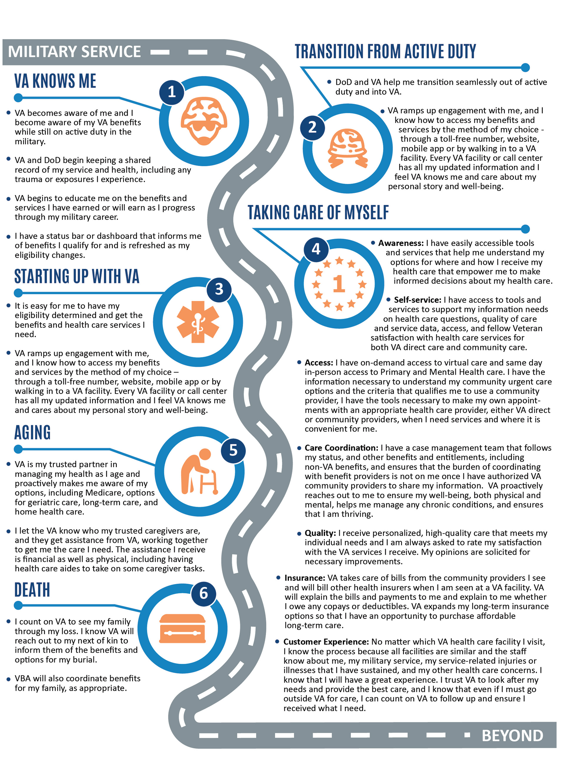 Veterans Health Administration (VHA) proposal graphic was created in collaboration with Atlas Research's proposal managing team as well as their liaisons with the US Department of Veterans Affairs (VA). The graphic uses vertical left-to-right storytelling to cover the milestones of Veterans.